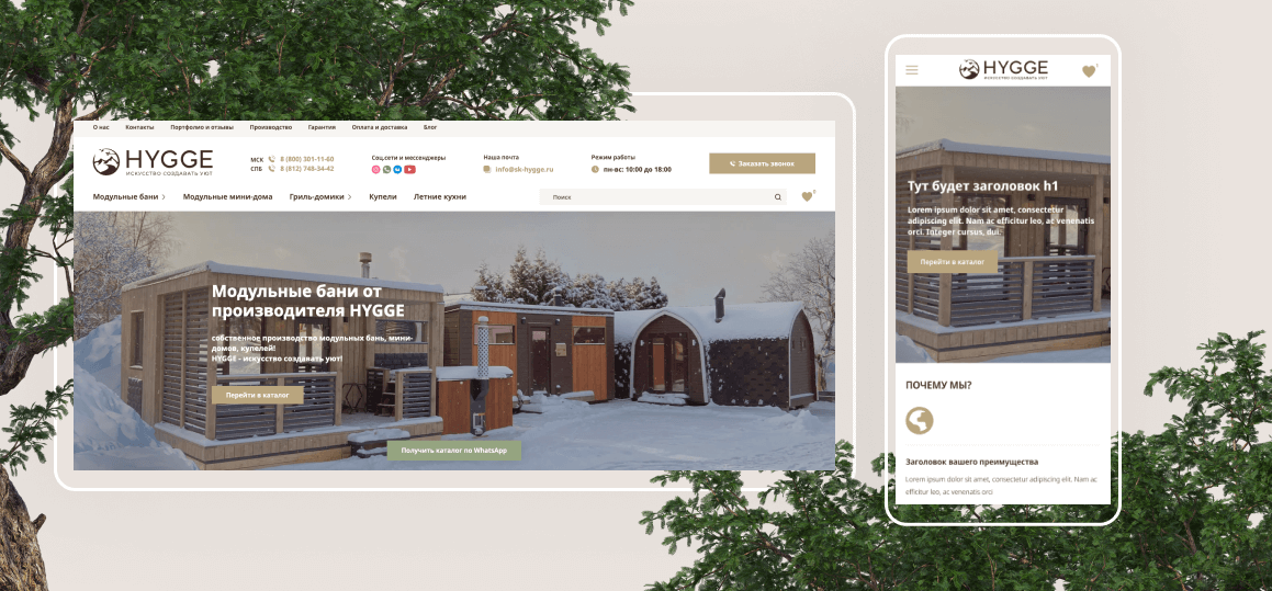 Разработка сайта sk-hygge.ru (сайт производителя модульных бань в Москве)